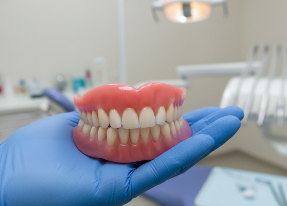 Врач надевает готовый протез, чтобы пациент мог оценить удобство, смыкание и положение протеза в прикусе.