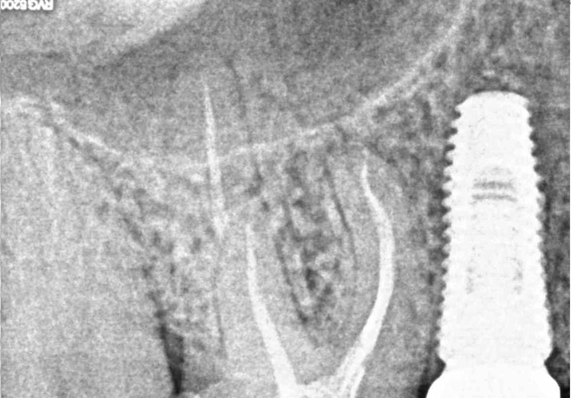 В нескольких клиниках было предложено удаление данного зуба. В нашей клинике такие зубы лечат. Пациенту было проведено эндодонтическое лечение данного зуба. Результат положительный, идет восстановление костной ткани.Оставьте заявку - перезвоним в течении 15 минут!
